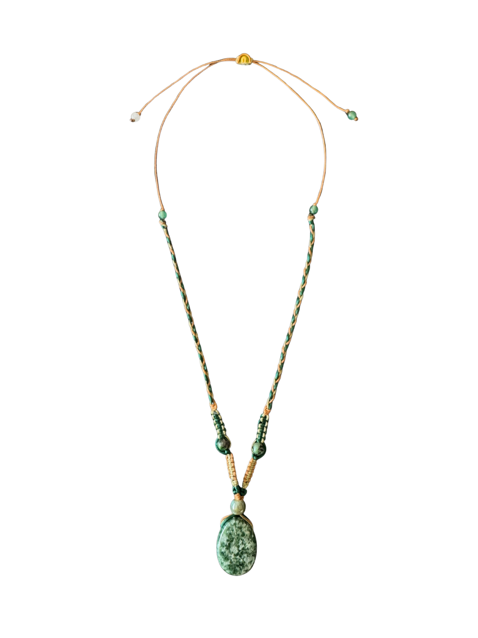 Montée sur un fil de coton naturel, tissée à la main, cette création se porte comme un talisman protecteur et harmonisant.