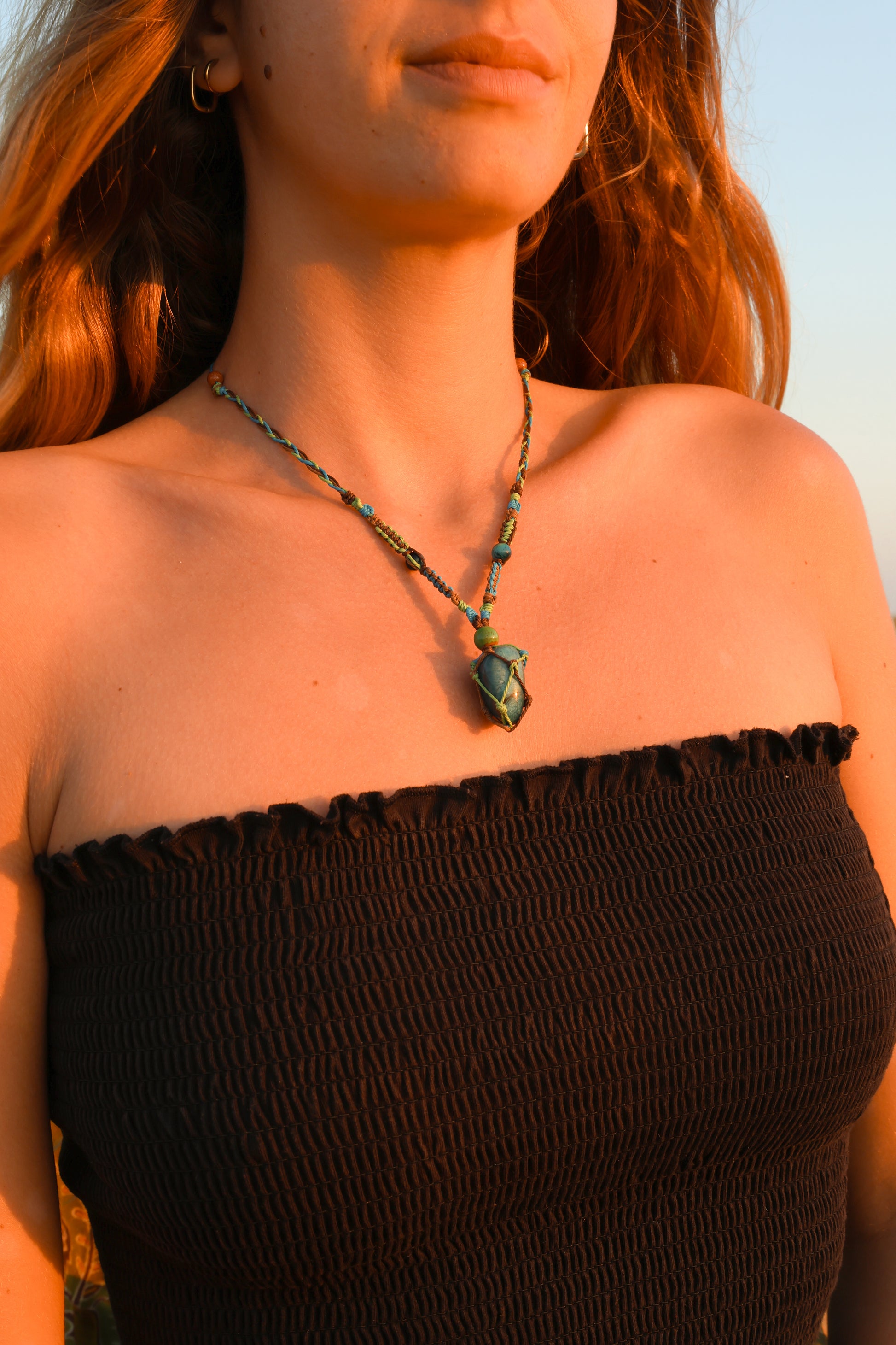 Laissez-vous guider par l’énergie vivifiante de l’Apatite avec ce collier en macramé tissé à la main. Pierre d’inspiration et d’expression, elle agit comme un catalyseur de clarté mentale et de motivation, idéale pour celles et ceux en quête de vérité, de créativité et de renouveau.