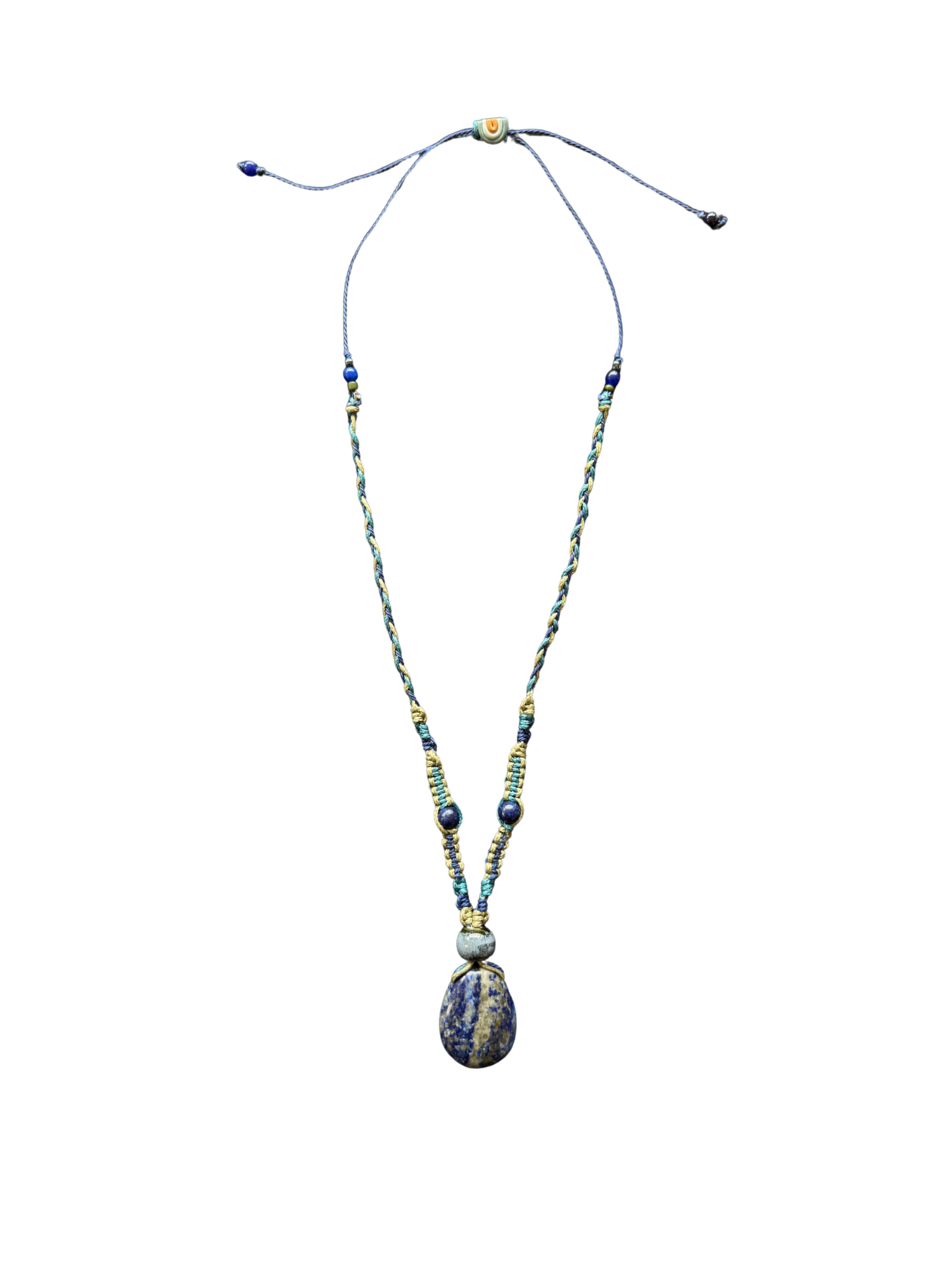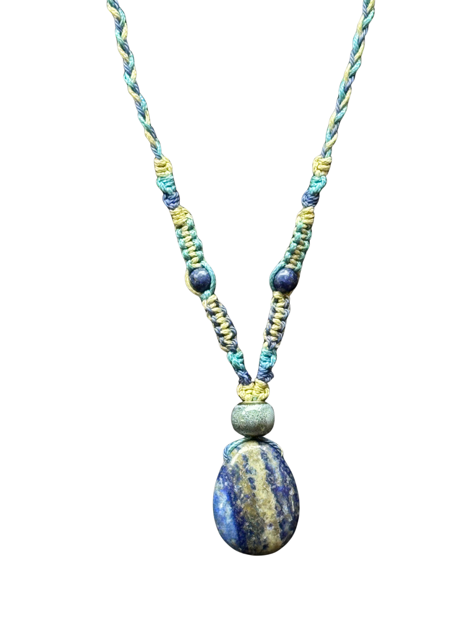 Portez la profondeur inspirante du Lapis-Lazuli avec ce collier en macramé tissé à la main. Montée sur un fil de coton naturel ou ciré, cette création se porte comme un talisman de clairvoyance et de sérénité. Elle accompagne celles et ceux qui avancent avec conscience, équilibre et fidélité à leur vérité intérieure.