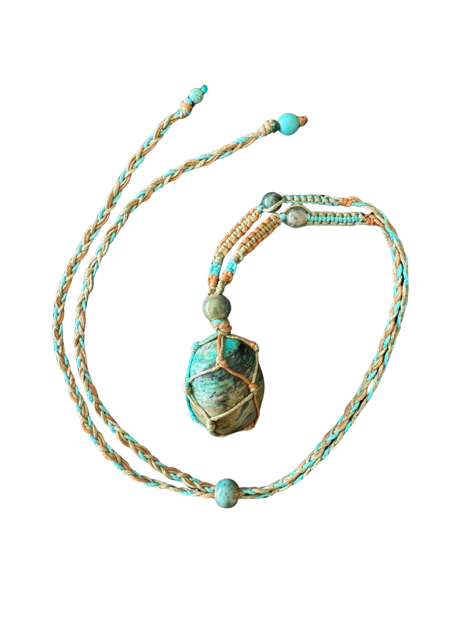 Montée sur un fil de coton naturel ou ciré, cette création se porte comme un talisman de paix et de fluidité.