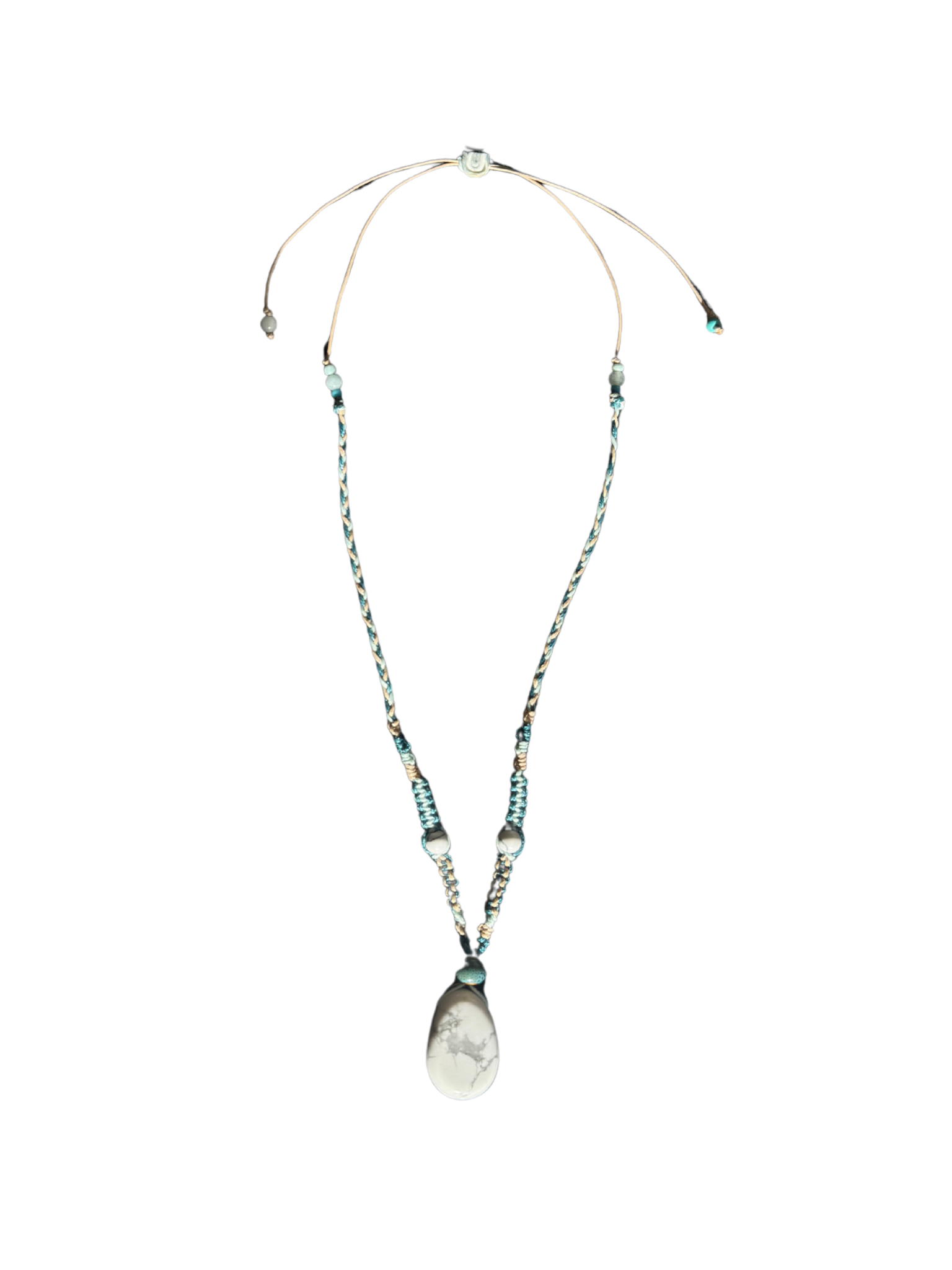 Portez la douceur apaisante de la Howlite Blanche avec ce collier en macramé tissé à la main.