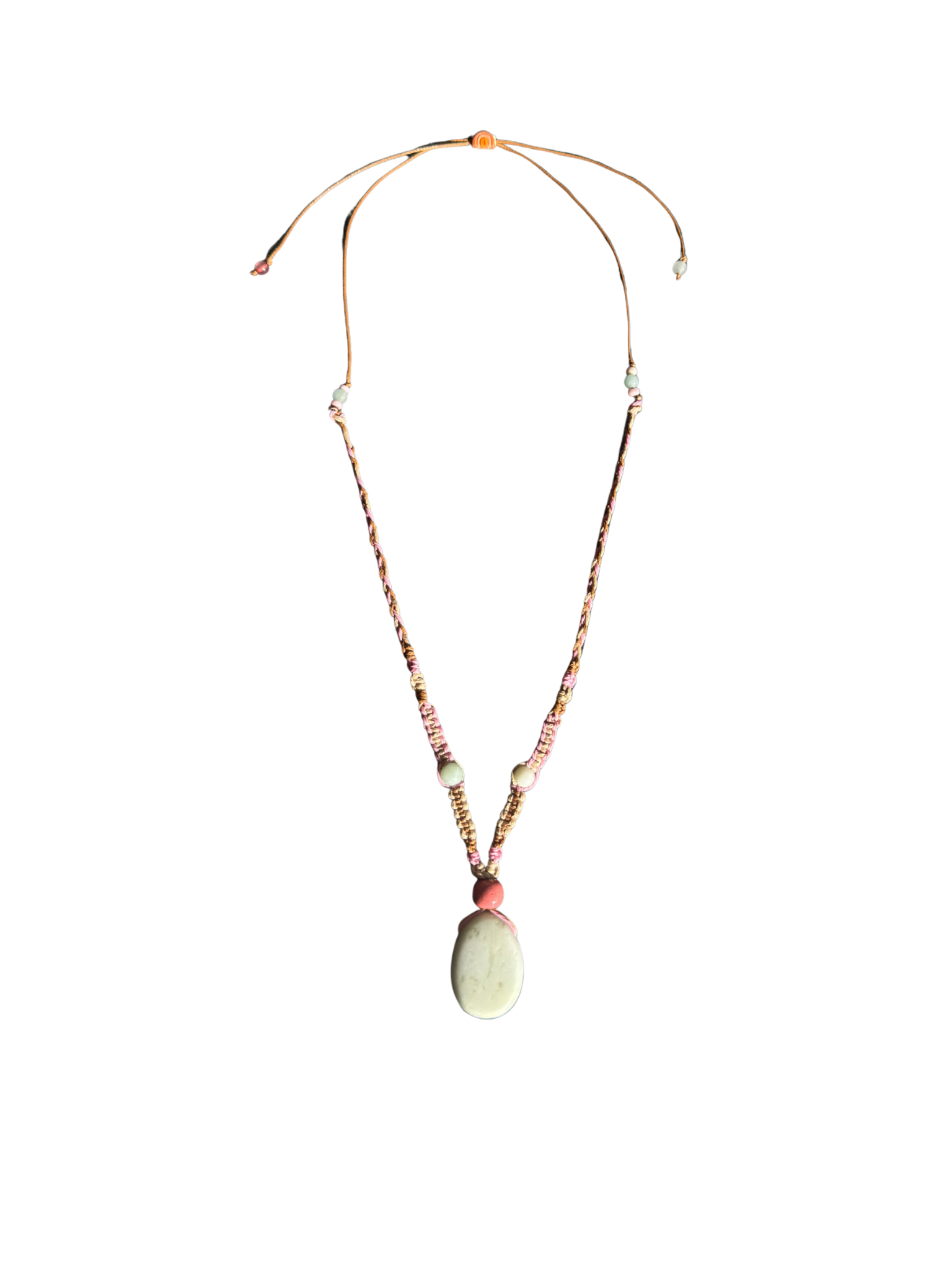 Montée sur un fil de coton naturel ou ciré, cette création se porte comme un talisman de calme et de protection.